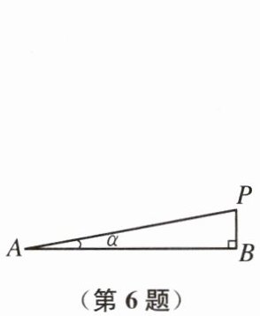6. 如图,交警在高速公路上$A$处操控无人机巡查,无人机从$A$处飞行到$P$处悬停,探测到它正下方的公路上$B$处有汽车发生故障.已知$A$处到$P$处的距离为$500\ \mathrm{m}$,从$A$处观测$P$处的仰角为$\alpha$,且$\cos \alpha = 0.98$,则$A$处到$B$处的距离为