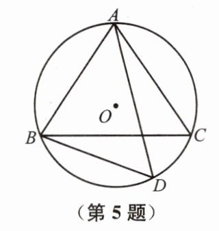 5. 如图,已知等边三角形$ABC$内接于$\odot O$,$D$是劣弧$BC$上一点,则$\sin \angle ADB =$
