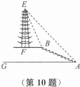 10. 公园一座塔楼的剖面和台阶的剖面在同一平面,在台阶底部点$A$处测得塔楼顶端点$E$的仰角$\angle EAG = 45^{\circ}$,台阶$AB$长$26\ \mathrm{m}$,台阶坡面$AB$的坡度$i = 5:12$;在点$B$处测得塔楼顶端点$E$的仰角$\angle EBF = 60^{\circ}$.塔顶到地面的高度$EF$为多少?