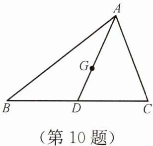 10. 如图,在$\triangle ABC$中,$D$是$BC$的中点,点$G$是$\triangle ABC$的重心. 求$\frac{AG}{AD}$的值.