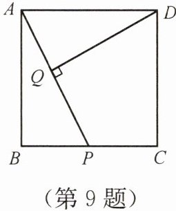 9. 如图,在正方形$ABCD$中,$AB = 2$,$P$是边$BC$上的一个动点(不与点$B$、$C$重合),$DQ⊥ AP$,垂足为$Q$.