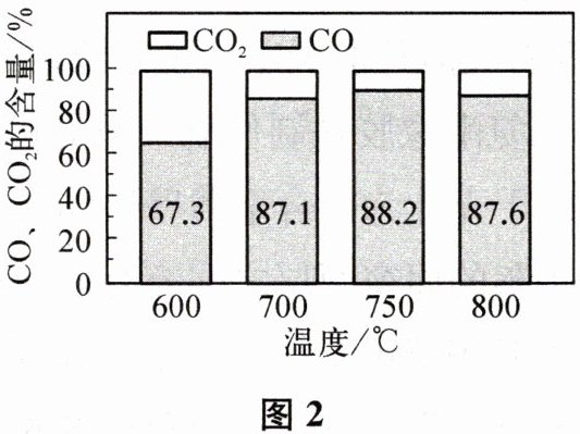 B.反应器 1 中,控制温度为$750^{\circ}C$时,抑制$CO_2$生成的效果最好