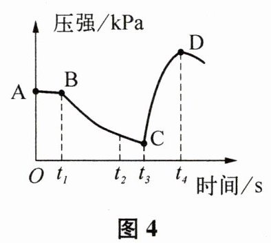 。(6)根据图2、图4分析,t₃s后压强突然变大,原因是
