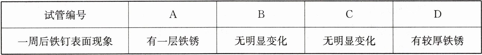 (3)对比A和D试管中的实验现象,说明铁锈蚀的快慢与