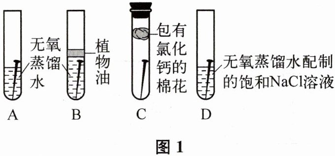 取四枚大小相同的洁净无锈铁钉分别放入试管中,进行图1所示实验,现象如下表。