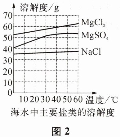 ①晒盐时不能将水全部蒸干,目的是使卤水中的NaCl大量析出,而其他盐类基本不析出,请结合图2和上表分析其他盐类不析出的原因: