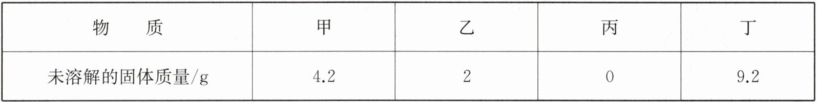 2. 20℃时,取甲、乙、丙、丁四种物质各20g,分别加入四个盛有50g水的烧杯中,充分溶解,情况如下表所示(温度保持20℃)。下列说法正确的是(