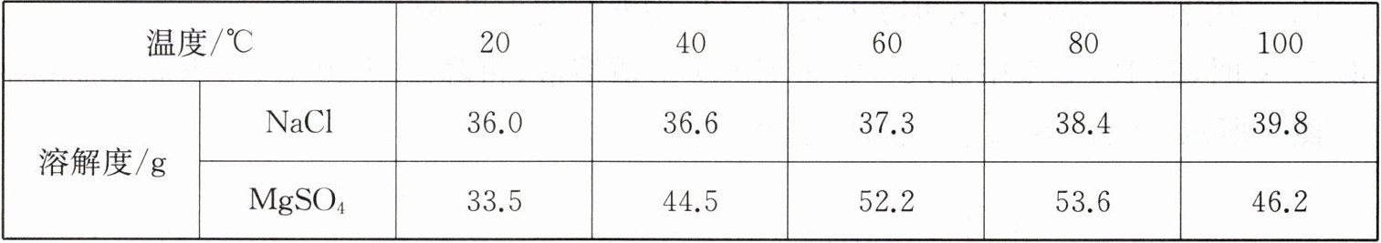 。(3) NaCl 与 MgSO₄的溶解度如下表所示。
