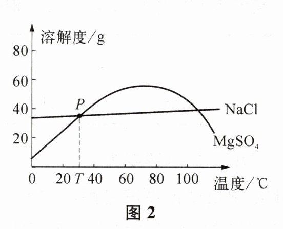 (1) 结合 NaCl 和 MgSO₄的溶解度曲线(图 2)分析,“待夏秋之交,南风(热风)大起,则一宵(一夜)结成”描述的结晶方法是