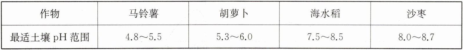 3. (2025盐城模拟)经测定,某空地土壤的pH约为7.8。根据常见作物最适生长的土壤pH范围表,这块空地上适合种植的作物是(