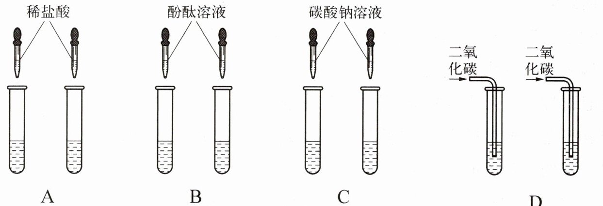 (5) 化学性质:某兴趣小组同学在学完碱的化学性质后,以“如何区分氢氧化钠溶液和氢氧化钙溶液”为主题,进行碱的化学性质的验证实验。他们分别取两种溶液于两支试管中,进行了如下图所示的四组实验。