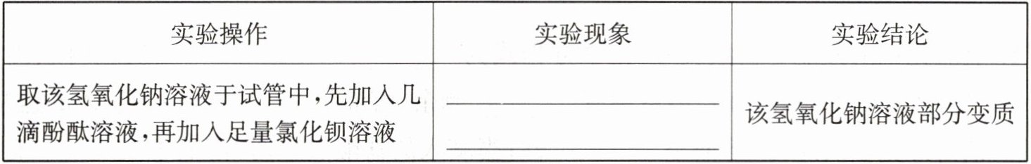 。答案:4 (1) $\mathrm{OH}^-$ C (2) 烧碱 火碱 $\mathrm{Ca(OH)}_2 + \mathrm{Na}_2\mathrm{CO}_3 \longrightarrow \mathrm{CaCO}_3 \downarrow + 2\mathrm{NaOH}$ (3) 熟石灰(或消石灰) $\mathrm{CaO}$ 放热 (4) A (5) ① CD ② $\mathrm{CO}_2 + 2\mathrm{NaOH} \longrightarrow \mathrm{Na}_2\mathrm{CO}_3 + \mathrm{H}_2\mathrm{O}$ 溶液变浑浊 ③ 溶液由红色变为无色 有白色沉淀生成,溶液始终为红色 (6) ① $\mathrm{NaOH} + \mathrm{HCl} \longrightarrow \mathrm{NaCl} + \mathrm{H}_2\mathrm{O}$ 复分解反应 ② 64.7 ③ $\mathrm{Na}^+、\mathrm{Cl}^-、\mathrm{H}^+、\mathrm{H}_2\mathrm{O}$ ④ 5.3 g (7) 氢氧化钙 氢氧化钠 氢氧化钠 (8) 密封 检验二氧化碳