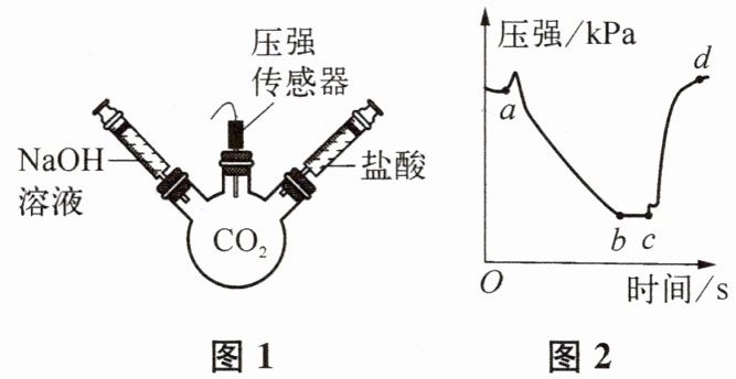 3. (2024连云港模拟)用图1装置进行实验,先后将NaOH溶液和盐酸快速全部推入,用压强传感器测得一段时间内图1装置中压强的变化如图2所示。下列推断正确的是(