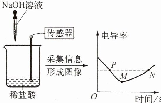 2. 电导率是衡量溶液导电能力大小的物理量。在相同条件下,电导率与离子浓度(单位体积内的离子数)成正比,利用数据传感技术测定溶液的电导率可辅助探究中和反应。下列对图示实验分析错误的是(