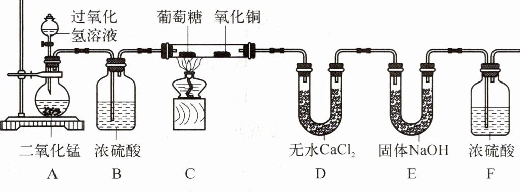 (1)为了确定葡萄糖的组成元素,某小组设计了如下实验(无水CaCl₂为常用干燥剂,部分固定装置省略),如下图连接好仪器后,加入药品前需进行的操作是