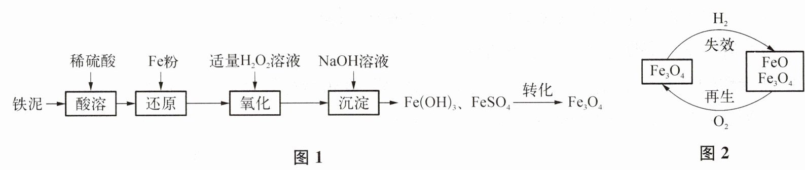 5. Fe₃O₄是合成氨催化剂的主要成分。用铁泥(主要成分为 Fe₂O₃、FeO,含少量 Fe)制备 Fe₃O₄的主要流程如图 1 所示,请回答下列问题。