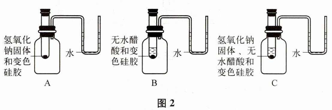 。② 实验过程中,观察到 C 的 U 形管内液面左低右高,出现该现象的原因可能是无水醋酸与氢氧化钠反应时放热或