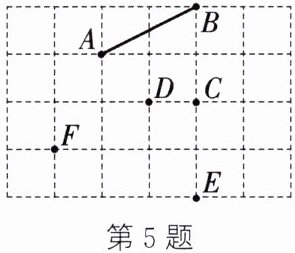5. 如图,在 $4×6$ 的网格中,点 $A$,$B$,$C$,$D$,$E$,$F$ 都在格点上,连接 $C$,$D$,$E$,$F$ 四点中任意两点得到的所有线段中,与线段 $AB$ 平行的是线段