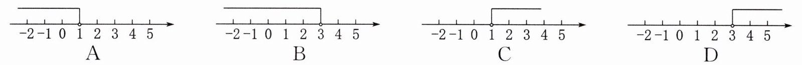 5. 在数轴上表示不等式 $ \frac{x - 1}{2} < 0 $ 的解集,正确的是(