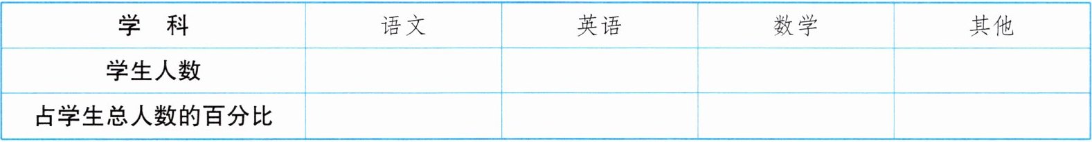 (4)根据调查情况,把七年级最喜欢学习某学科的学生人数及其占学生总人数的百分比填入下表: