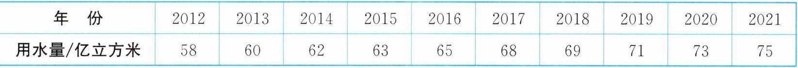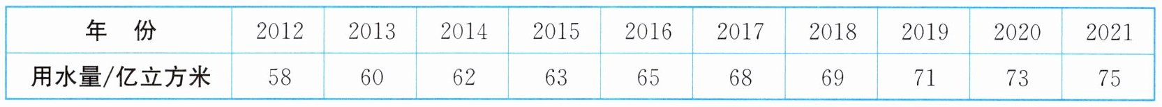 8. (教材P173练习第2题变式)随着社会的快速发展,生活用水量逐年上升,某地区生活用水量情况统计如下表: