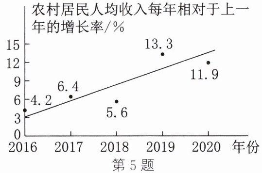 5. (原创)如图所示为某市统计局公布的2016~2020年该市农村居民人均收入每年相对于上一年的增长率的趋势图,下列说法正确的是(