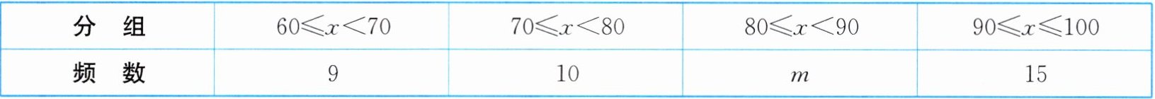 (2) 若根据甲小组的数据绘制扇形图,求$ 60 \leqslant x < 70 $对应的扇形圆心角的度数.