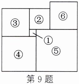 9. 在一次剪纸活动中,小聪依次剪出 6 张正方形纸片,拼成如图所示的图形. 若小聪所拼得的图形中正方形①的面积为 1,且正方形⑥与正方形③的面积相等,则正方形⑤的面积为