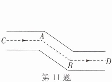 11. (教材P19习题7.2第3题变式)(2025·湖南)如图,一条排水管连续两次转弯后又回到与原来相同的方向,若第一次转弯时$∠CAB=145^{\circ }$,则$∠ABD$的度数为