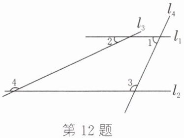 12. 如图,$l_{1}// l_{2}$,且分别与$l_{3},l_{4}$相交,$∠1$与$∠2$互余,$∠3=115^{\circ }$,求$∠4$的度数.