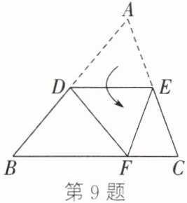 9. 如图,把三角形ABC沿平行于BC的直线DE折叠,使点A落在边BC上的点F处.若$∠B=50^{\circ }$,则$∠BDF$的度数为
