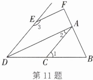 11. 如图,$∠1 = ∠BDE$,$∠2 + ∠3 = 180^{\circ}$.