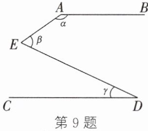 9. 如图,如果$AB // CD$,$∠\alpha = 145^{\circ}$,$∠\beta = 60^{\circ}$,那么$∠\gamma$的度数是