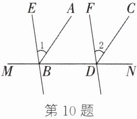 10. 如图,如果 $\angle 1=\angle 2$,那么 $AB// CD$,这个命题是真命题吗?若不是,请你再添加一个条件,使该命题成为真命题,并加以说明。