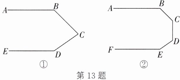 13.(1)如图,过点C作CF//AB,则∠1 + ∠B = 180°.