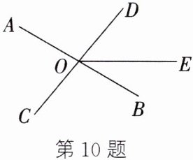 10. 如图,直线$AB$,$CD$相交于点$O$,$\angle AOC = 80^{\circ}$,射线$OE$把$\angle BOD$分成两个角,且$\angle BOE:\angle EOD = 3:5$。