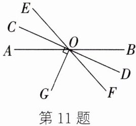 11. 如图,直线$AB$,$CD$,$EF$相交于点$O$,$OG⊥ CD$,$\angle BOD = 24^{\circ}$。