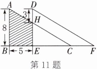 11. 如图,将直角三角形 ABC 沿着 BC 方向平移 BE 的长度,得到直角三角形 DEF.求阴影部分的面积.