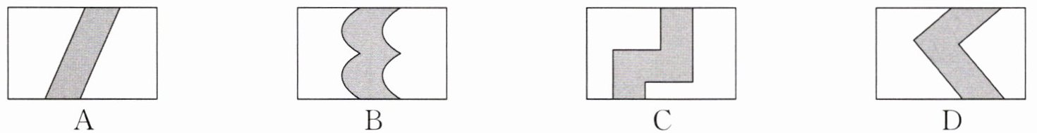 7. (新情境·日常生活)学校一长方形草地中需修建一条等宽的小路,为了达到“曲径通幽”的效果,下列四种设计方案,其中有一个方案修建小路后剩余草坪面积与其他三个方案不等,它是 (