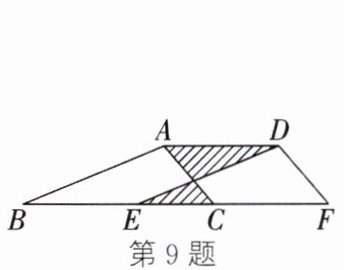 9. 如图,AB=4cm,BC=5cm,AC=2cm,将三角形 ABC 沿 BC 方向平移 a cm(0<a<5),得到三角形 DEF,连接 AD,则阴影部分的周长为