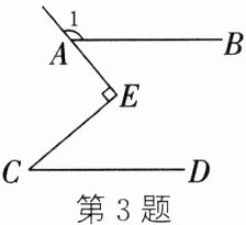 3. 如图,直线 $ AB // CD $. 若 $ \angle E = 90^{\circ} $,$ \angle C = 40^{\circ} $,则 $ \angle 1 = $