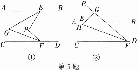 5.(1)如图①,过点P作PM//AB,过点Q作QN//AB,则∠EPM = ∠AEP.