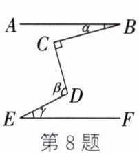 8. 如图,若 $ AB // EF $,$ \angle C = 90^{\circ} $,则 $ \alpha $,$ \beta $ 与 $ \gamma $ 之间的数量关系是