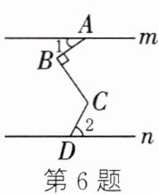 6. 如图,直线 $ m // n $,$ AB ⊥ BC $. 若 $ \angle 1 = 35^{\circ} $,$ \angle 2 = 62^{\circ} $,则 $ \angle BCD $ 的度数为(