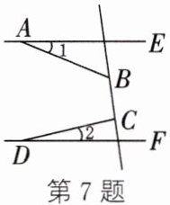 7. 如图,直线 $ AE // DF $. 若 $ \angle ABC = 120^{\circ} $,$ \angle DCB = 95^{\circ} $,则 $ \angle 1 + \angle 2 = $