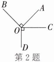 2. 如图,$ OA ⊥ OB $,$ OC ⊥ OD $,$ \angle BOA : \angle AOD = 2 : 3 $,则 $ \angle BOD $ 的度数为