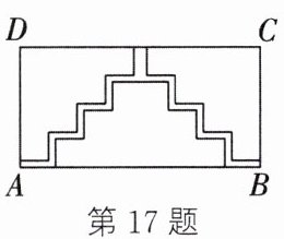 17. 如图所示为一块长方形场地的示意图,长 $AB$ 为 $102\mathrm{m}$,宽 $AD$ 为 $51\mathrm{m}$,$A$,$B$ 两处入口的路宽都为 $1\mathrm{m}$,两条小路汇合处的路宽为 $2\mathrm{m}$,其余部分为草坪,则草坪的面积为(