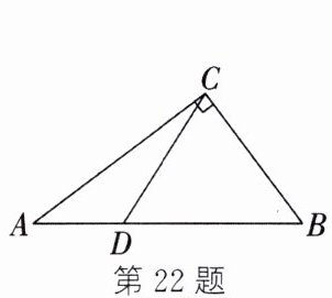 22. 如图,在三角形 $ABC$ 中,$\angle ACB = 90^{\circ}$,$BC = 12$,$AC = 16$,$AB = 20$,$D$ 是 $AB$ 边上的动点,连接 $CD$,则线段 $CD$ 长的最小值是