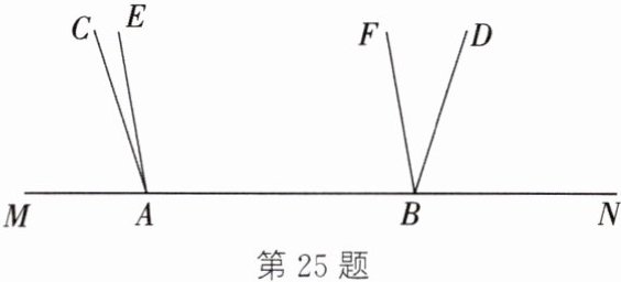 25. (2025·通州期中)如图,点 $A$,$B$ 在直线 $MN$ 上,射线 $AE$,$BF$ 分别在 $\angle CAN$ 与 $\angle DBM$ 的内部,且 $\angle CAN = \dfrac{3}{2}\angle DBN$。