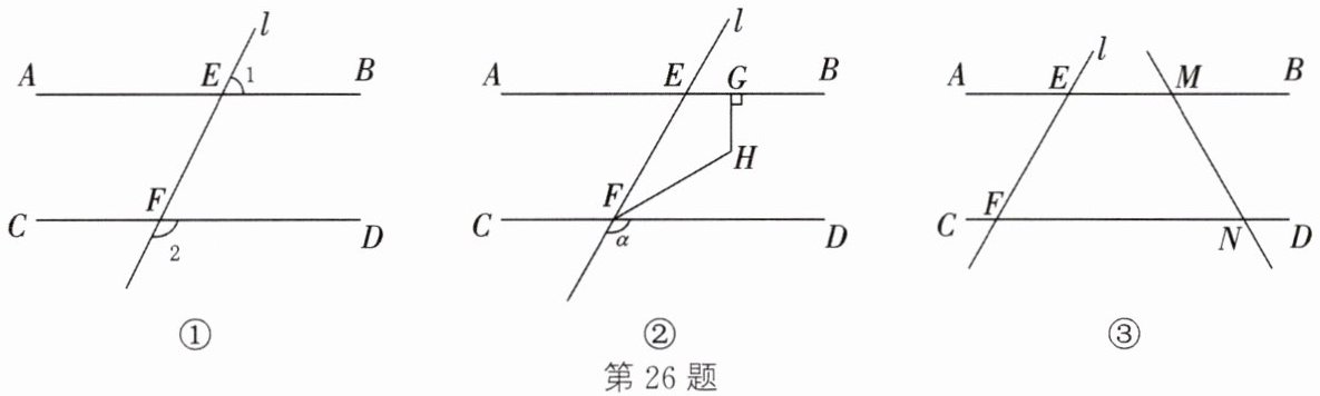 26. (2025·海安期中)已知直线 $l$ 分别交直线 $AB$,$CD$ 于点 $E$,$F$。